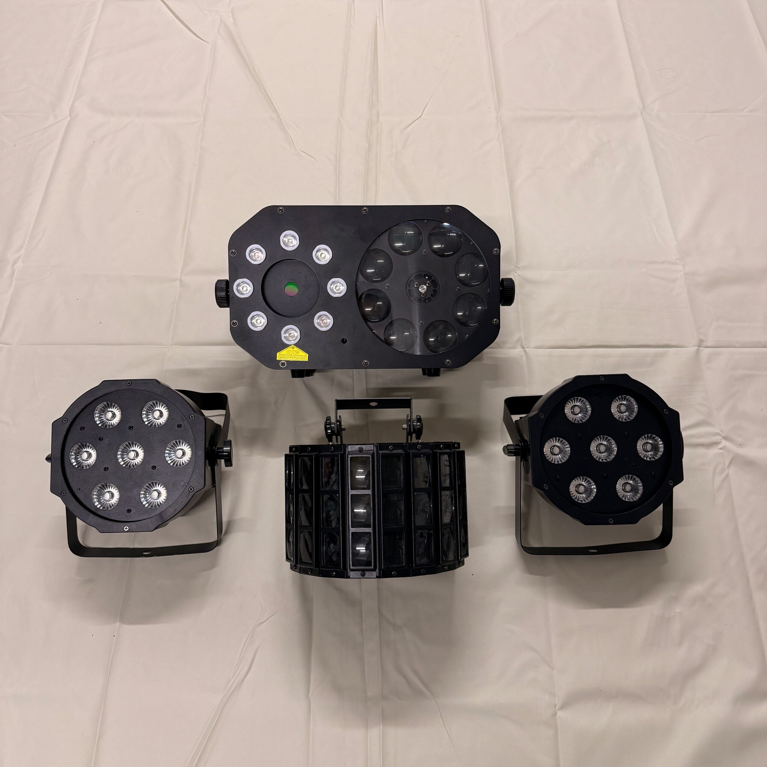 Zwei MaxiPars setzen kräftige Farben, während der Stinger Gobo für Bewegung und der Mini D-5 den Raum mit zusätzlichen Spots füllt.