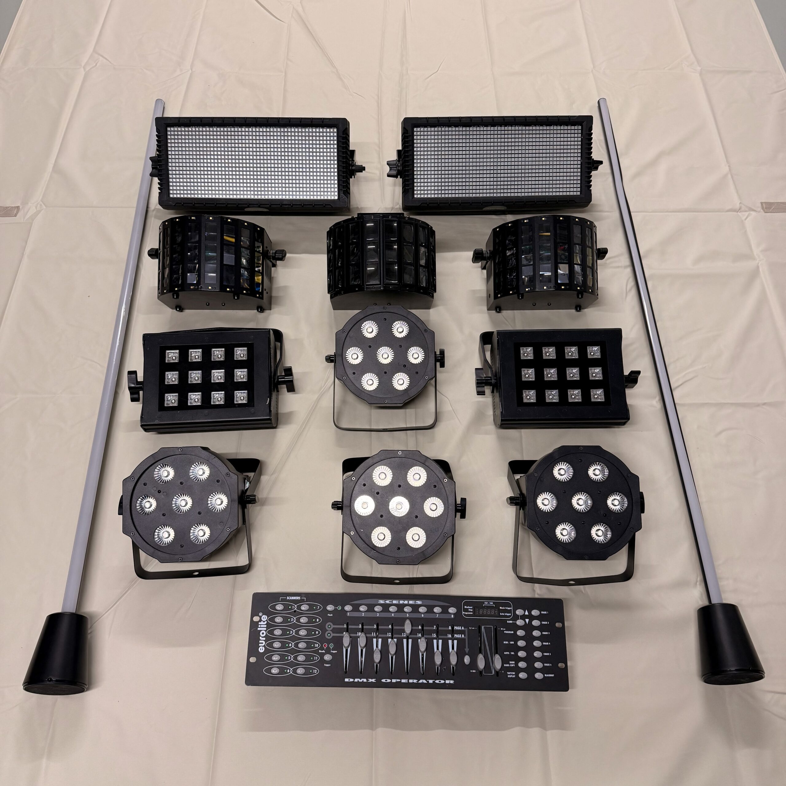 Die Eurolite SMD 864 PRO muss darüber gesteuert werden; alle anderen Lichter laufen automatisch oder mit Musiksteuerung.