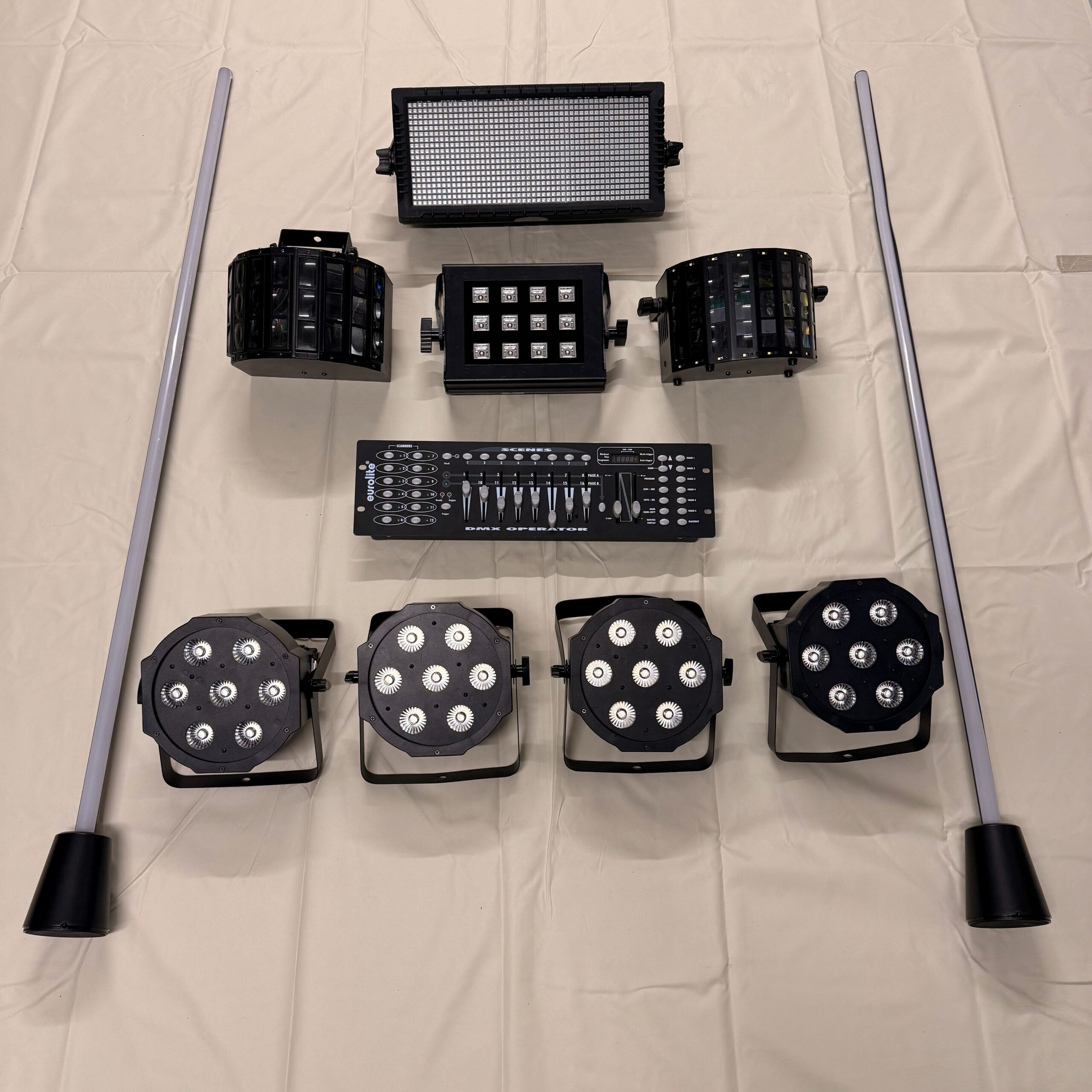 Die Eurolite SMD 864 PRO muss darüber gesteuert werden; alle anderen Lichter laufen automatisch oder mit Musiksteuerung.