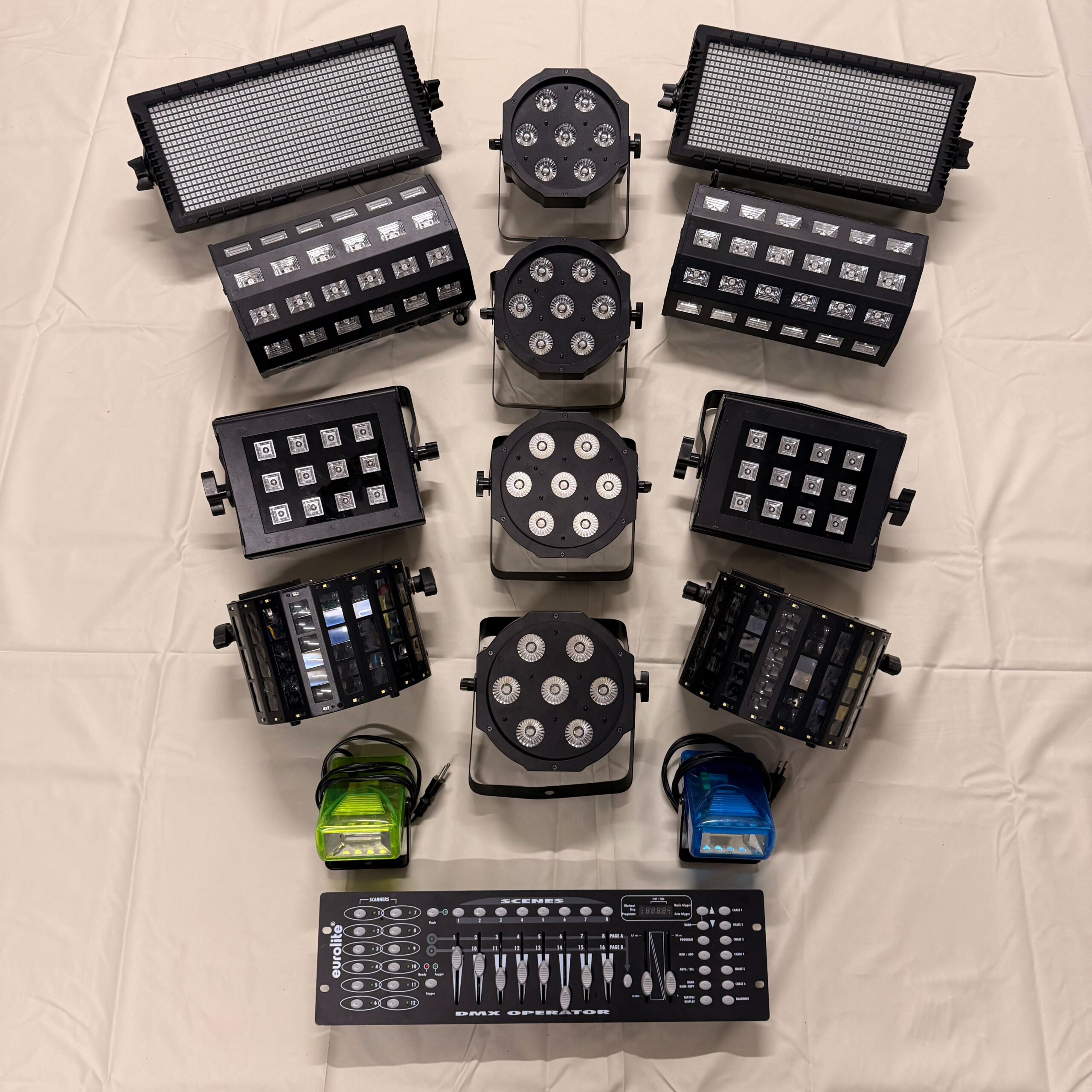 Zwei Superflys sorgen für Bewegung, vier MaxiPars liefern satte Farbflächen, während die beiden SMD 864 PRO Strobes den Beat sichtbar machen.