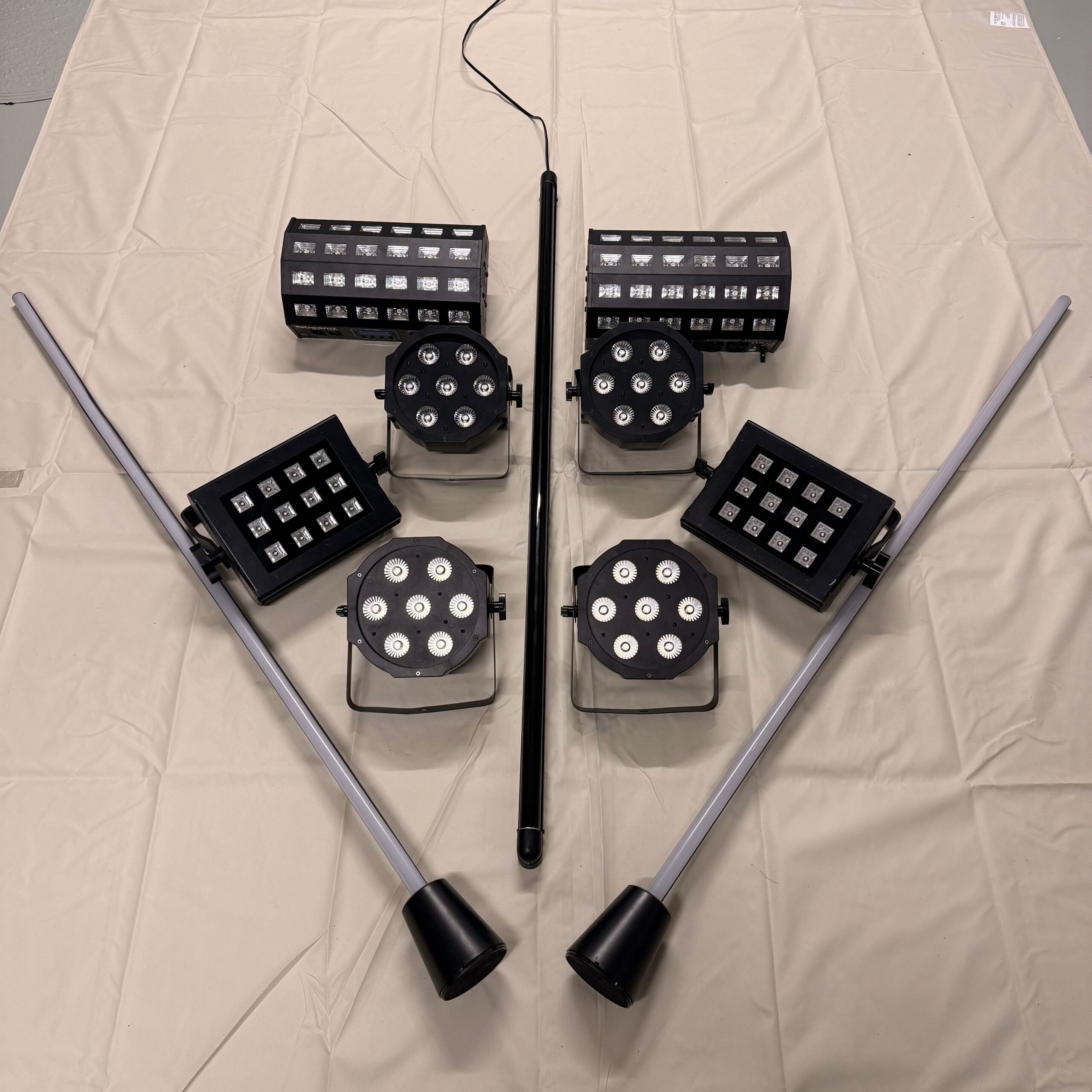 Vier MaxiPars sorgen für sanfte, gleichmäßige Farbtöne, während zwei UV Floods, zwei BUV-Fluter und die UV-Röhre für intensiven Glow sorgen.