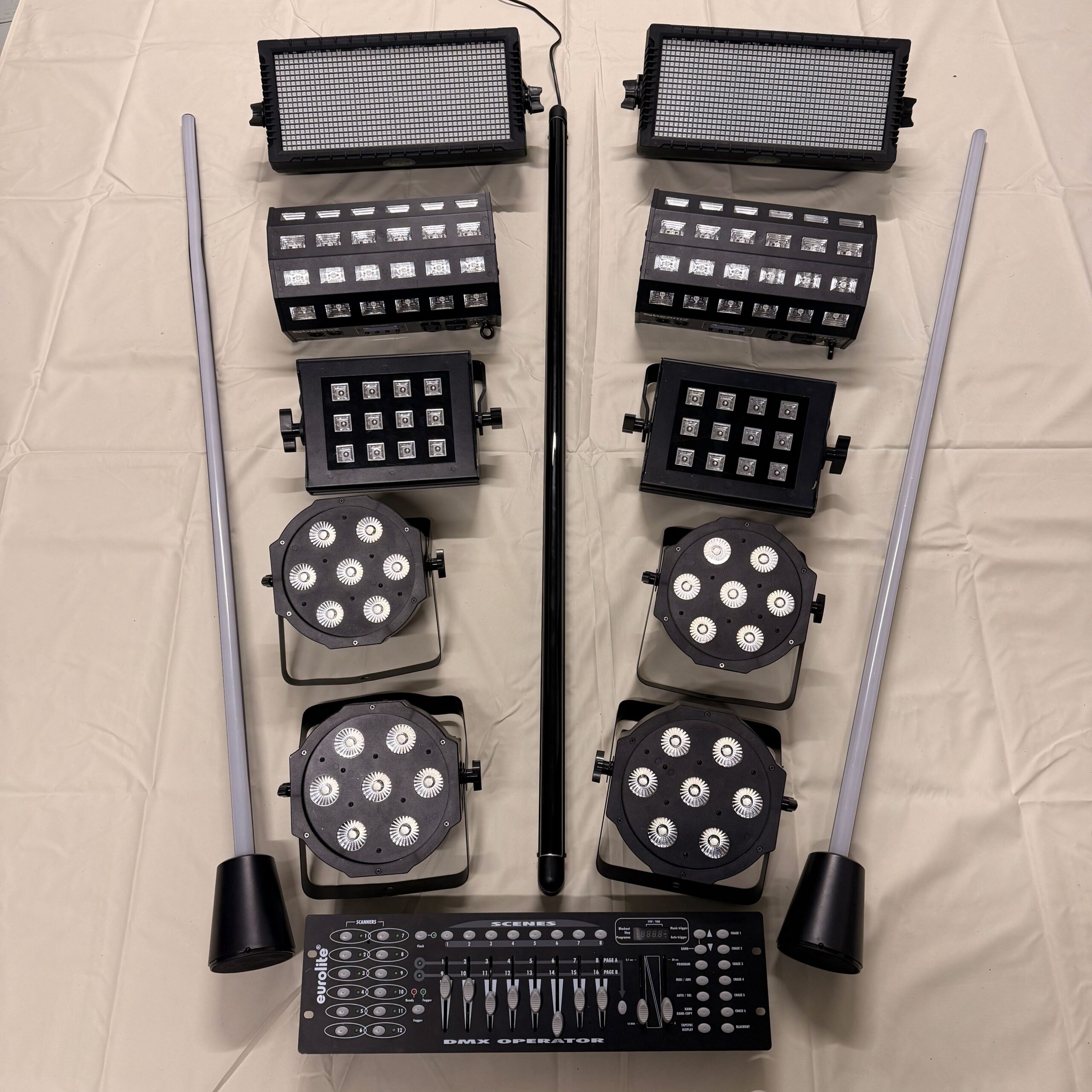 Die Eurolite SMD 864 PRO muss darüber gesteuert werden; alle anderen Lichter laufen automatisch oder mit Musiksteuerung.